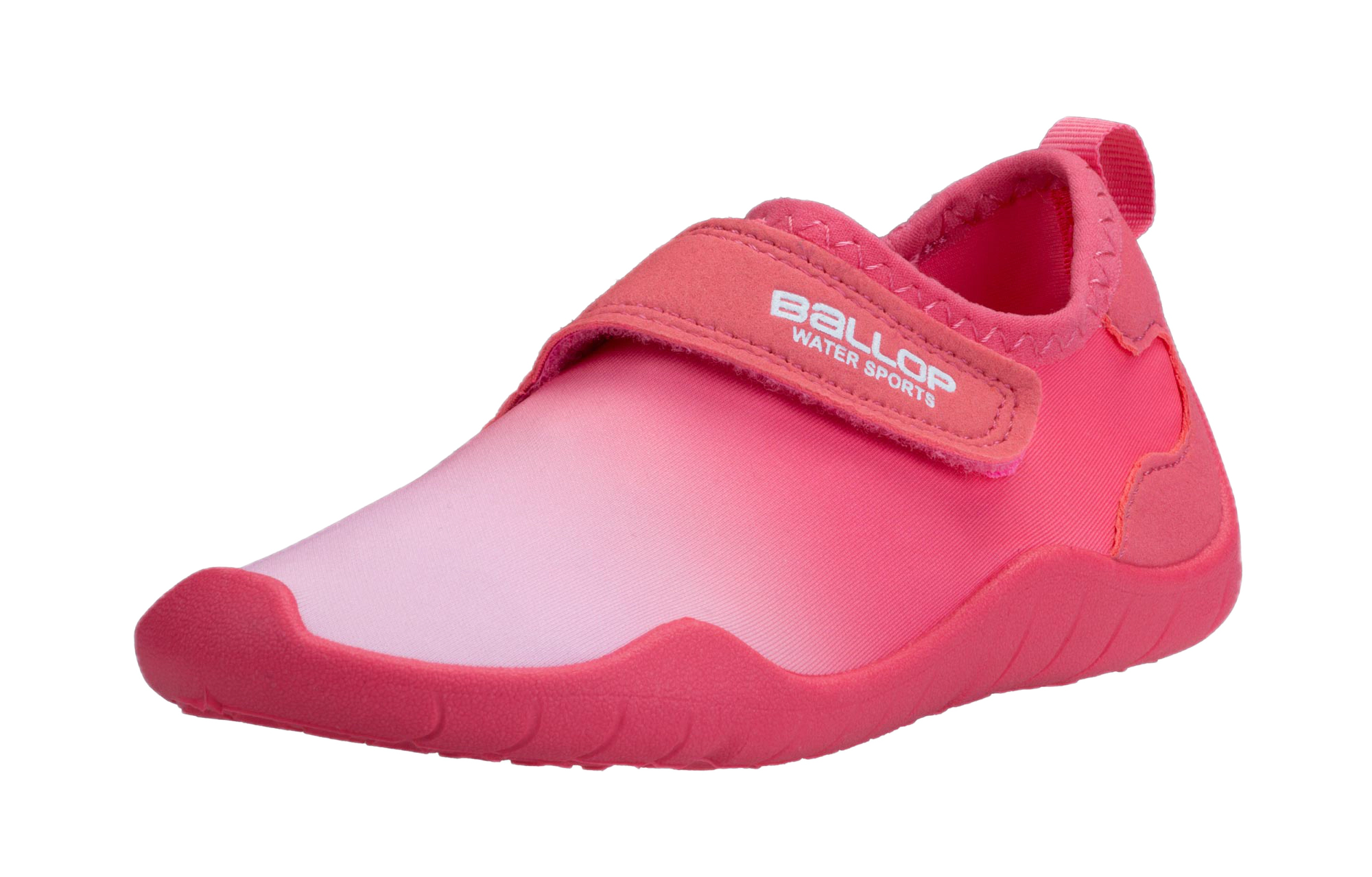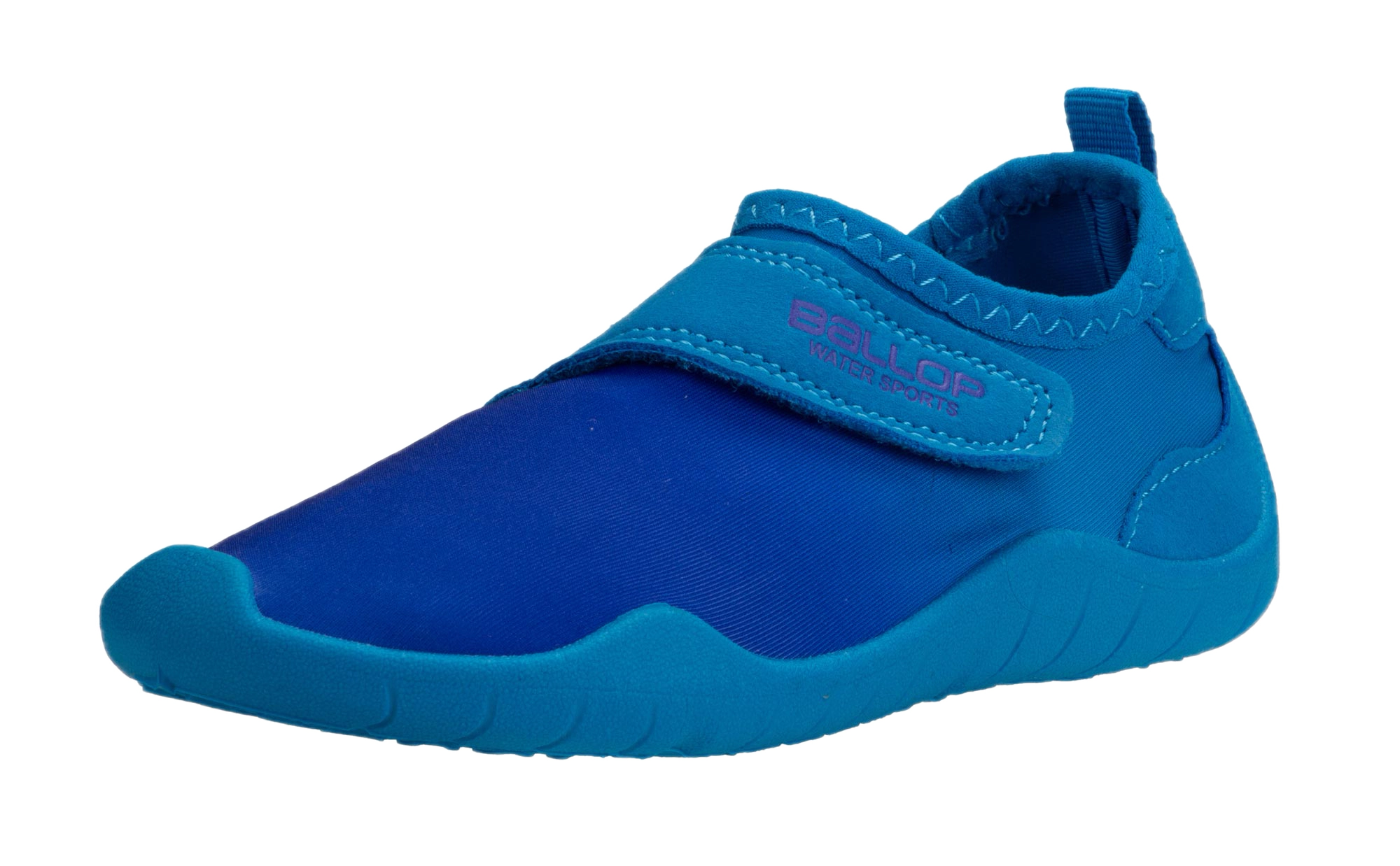 Ein Klettverschluss macht das An- und Ausziehen besonders leicht und ermöglicht eine kindgerechte Passform. Verstärkungen an der Ferse erhöhen die Stabilität, die hochgezogene Sohle schützt die Zehen bei Bewegung. Der perfekte Wasserschuh für kleine Entdecker!